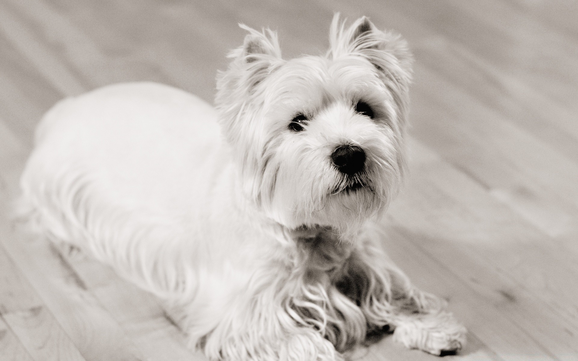 Üzgün bir köpeğin siyah beyaz fotoğrafı