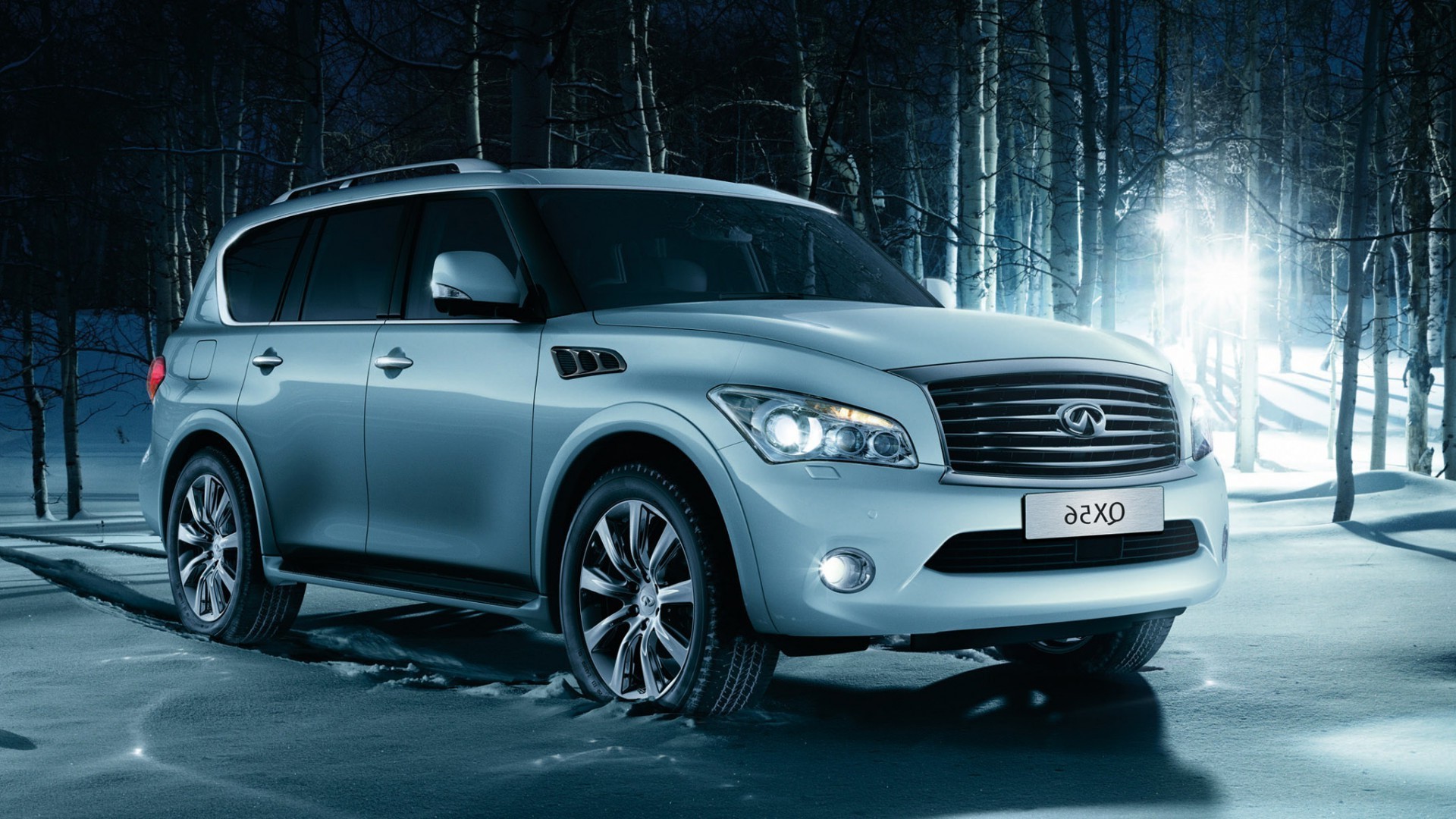 Kış ormanının arka planına karşı beyaz SUV