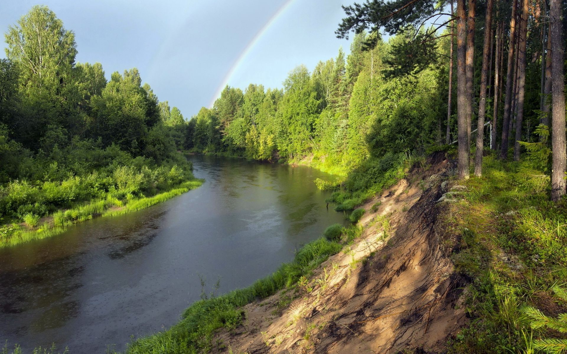 Nehrin yakınındaki gökyüzünde bir gökkuşağı