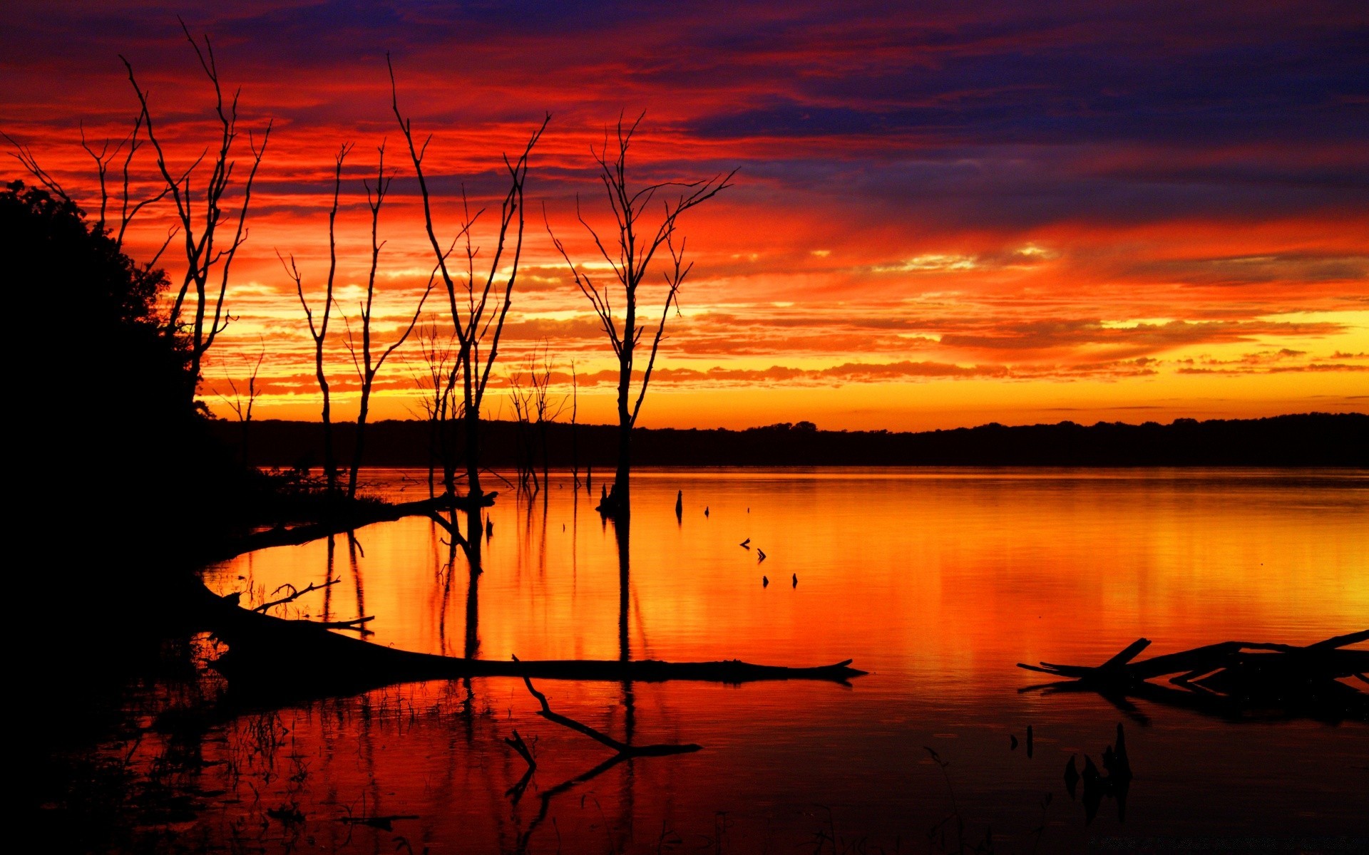 Sakin bir nehrin üzerinde gün batımı