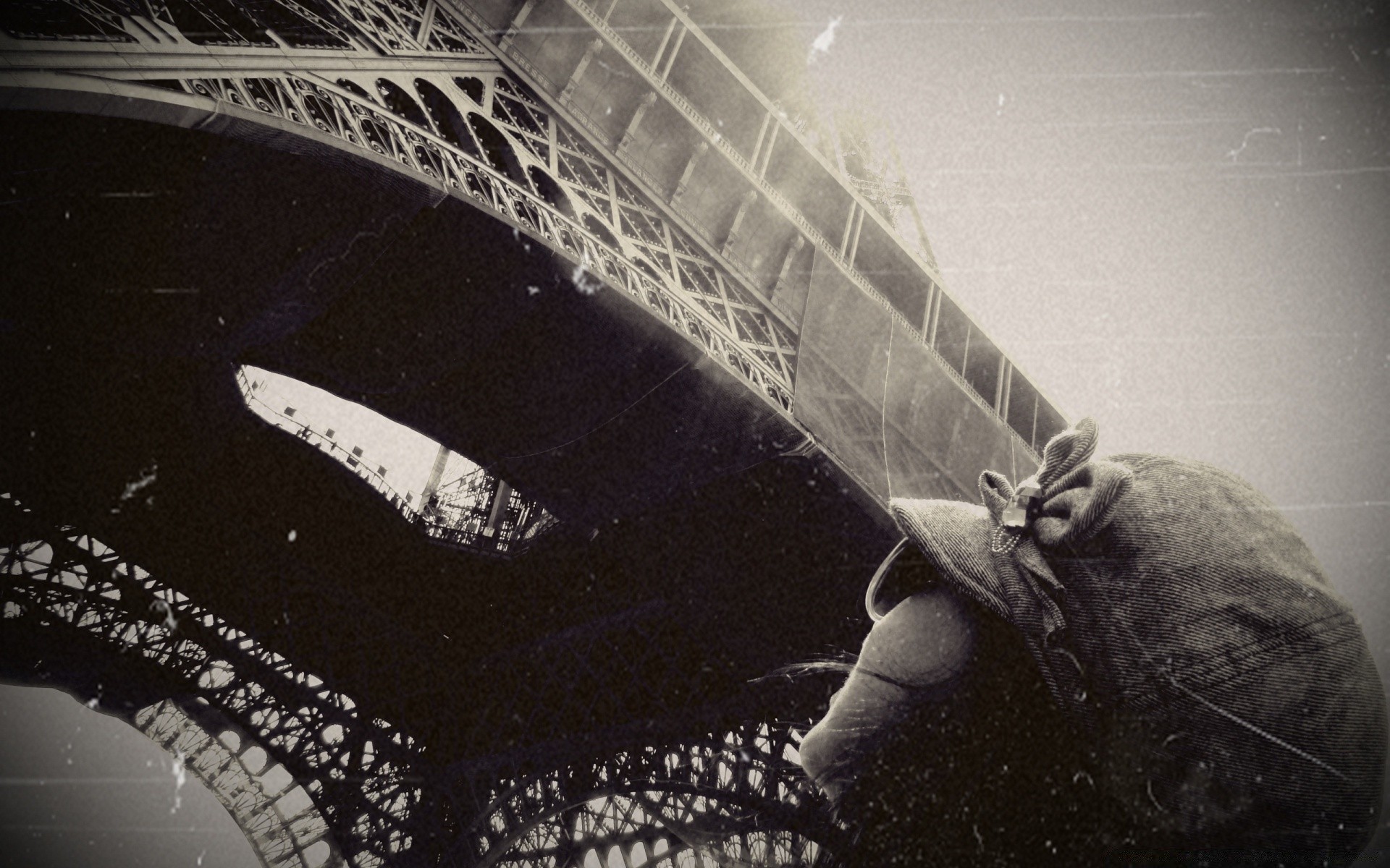 Paris'teki bir kızın vintage siyah beyaz fotoğrafı