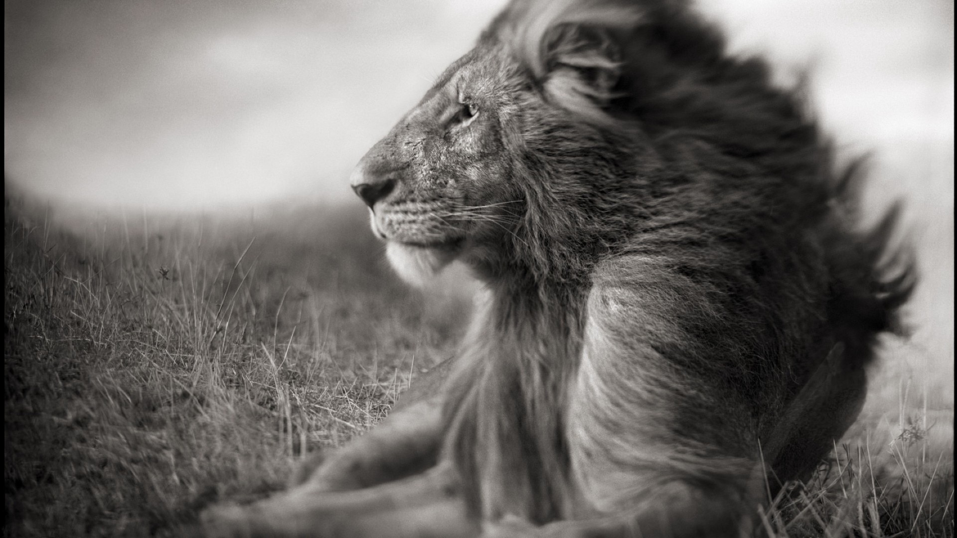Aslanla siyah beyaz manzara