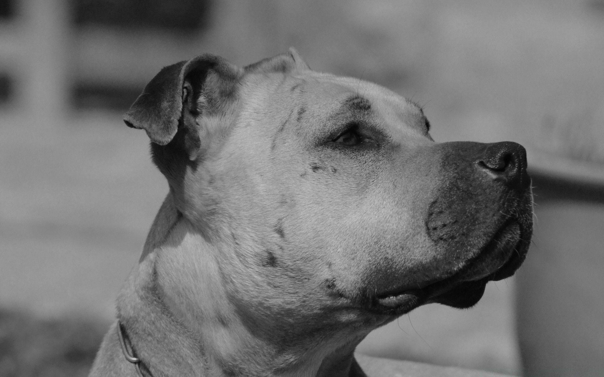 Dövüş köpeğinin siyah beyaz fotoğrafı