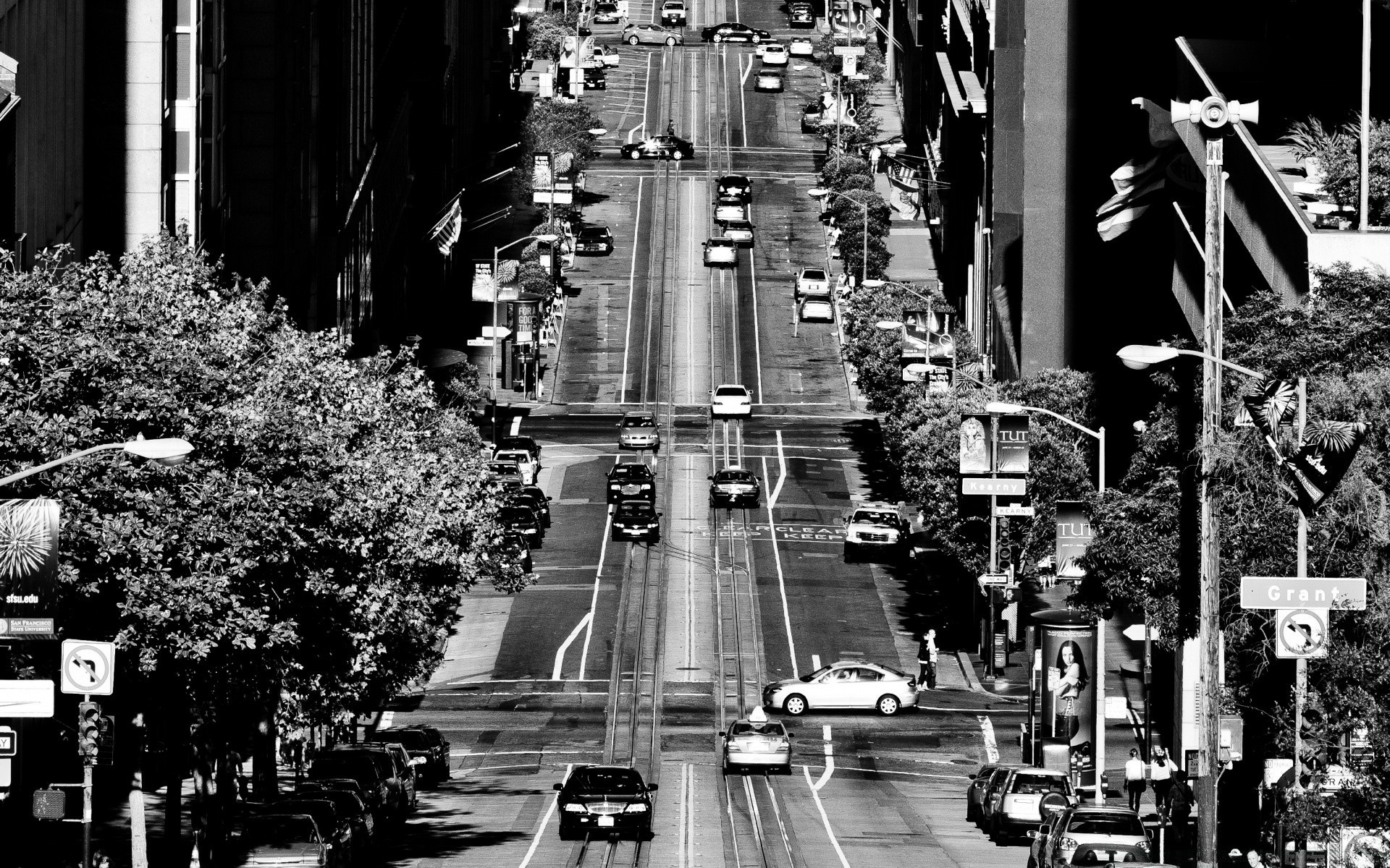 Yürüyen merdiven siyah beyaz efektle yukarı doğru ilerliyor