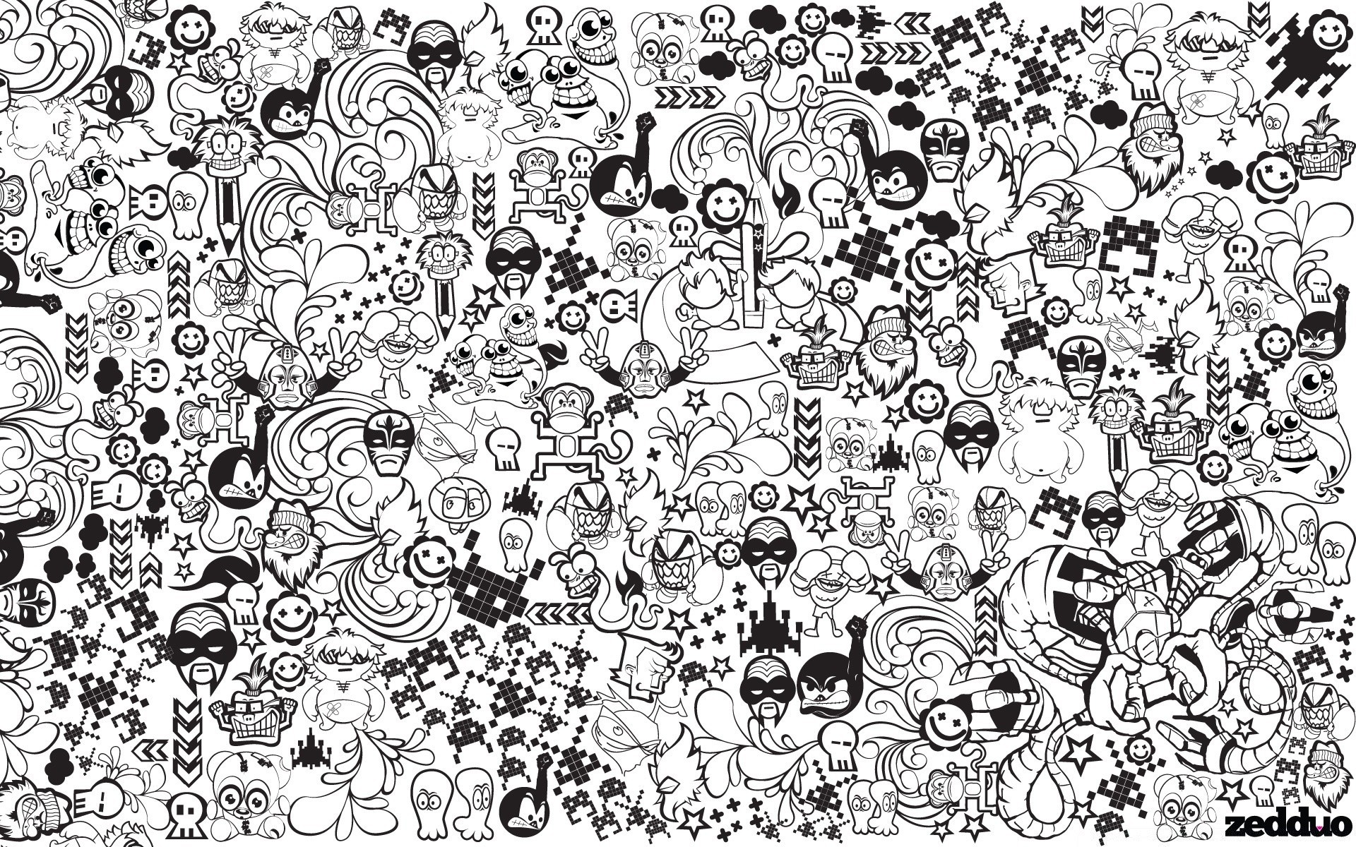 Çizgi roman karakterleriyle siyah ve beyaz desenler