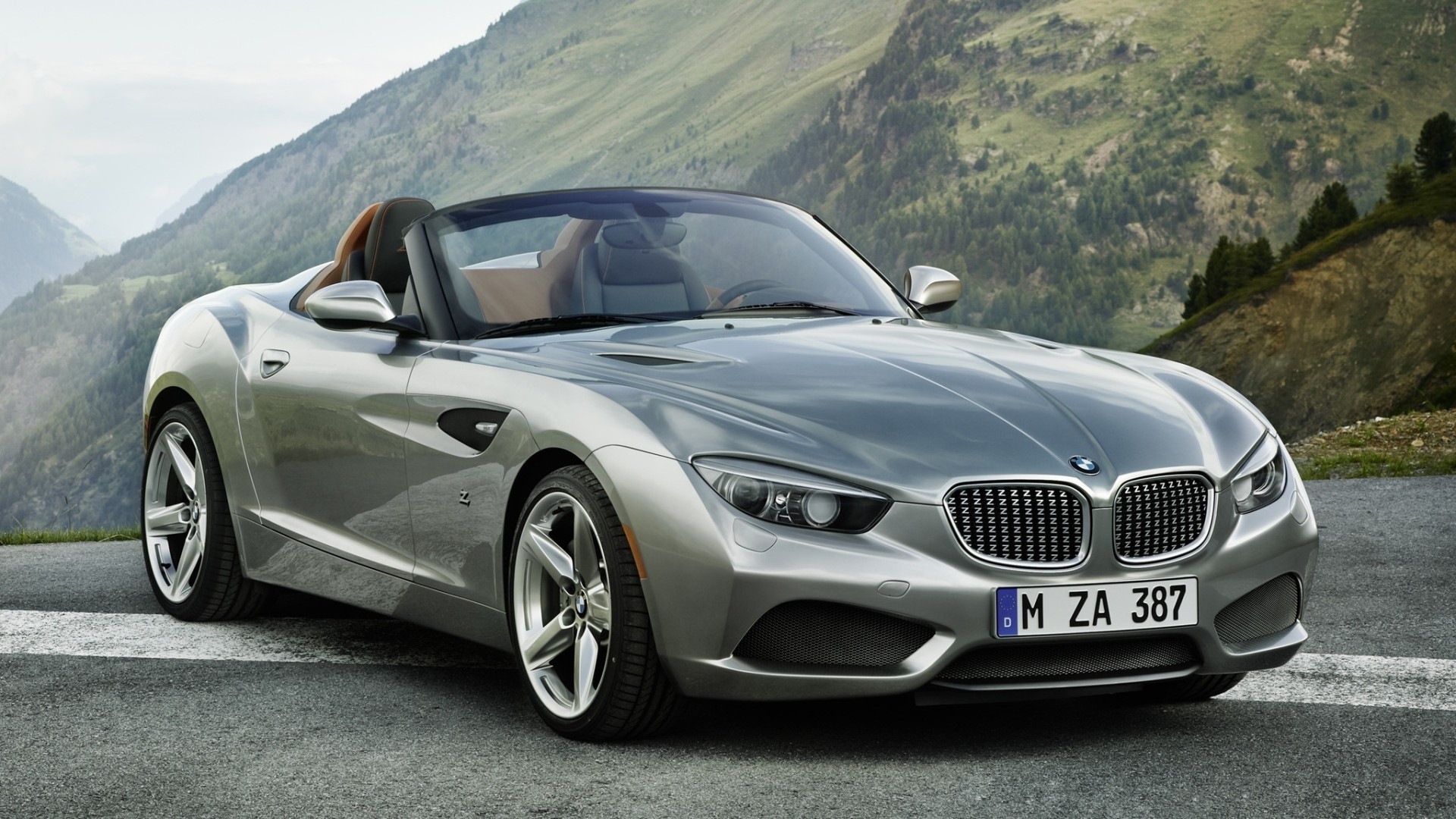 Dağların zemininde spor araba