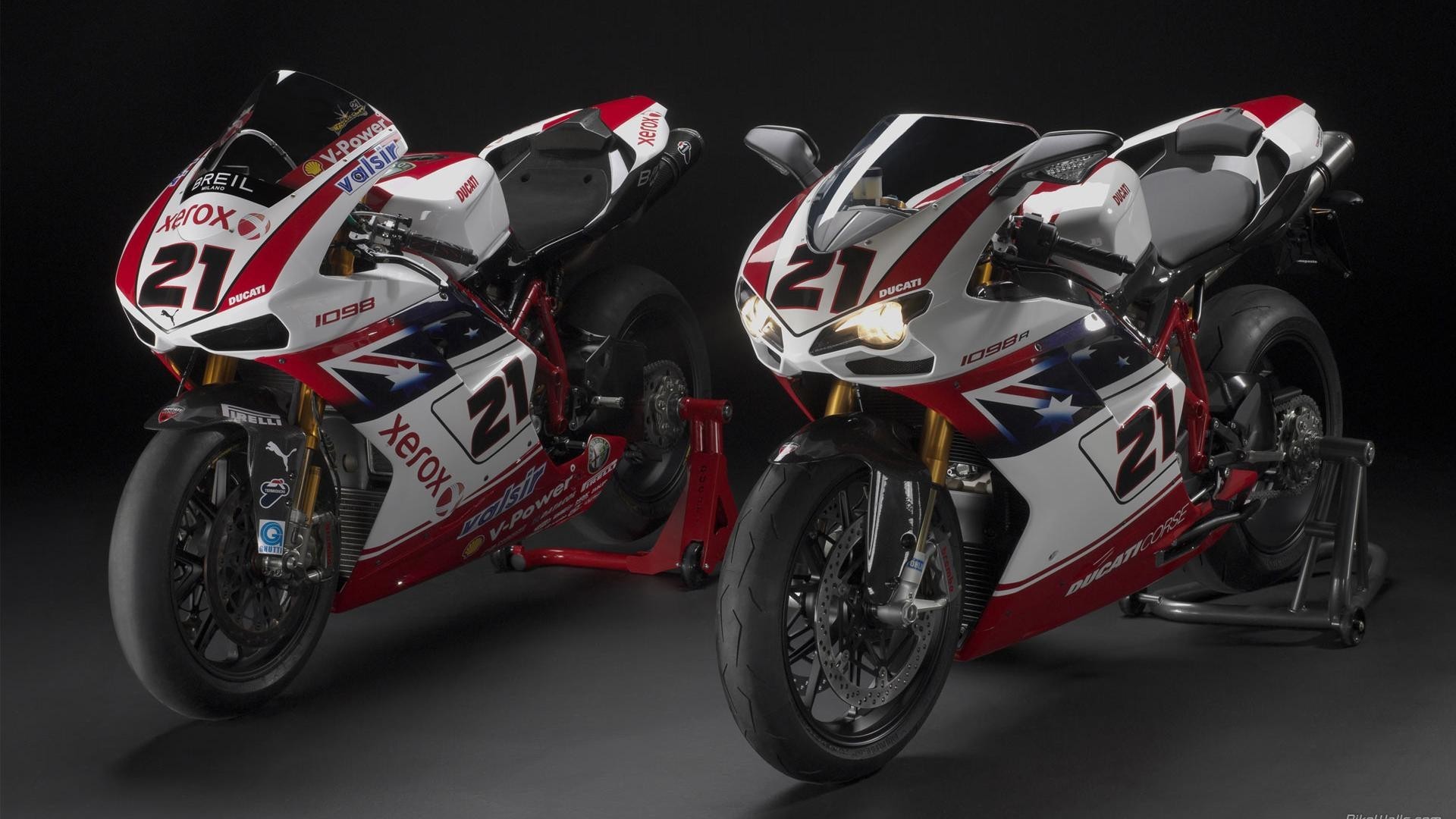 Karanlık bir arka plana karşı iki spor motosikleti