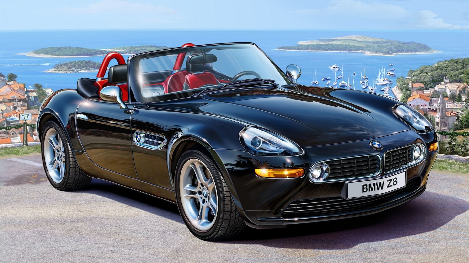Kaldırım döşemesi üzerinde bmw spor arabası