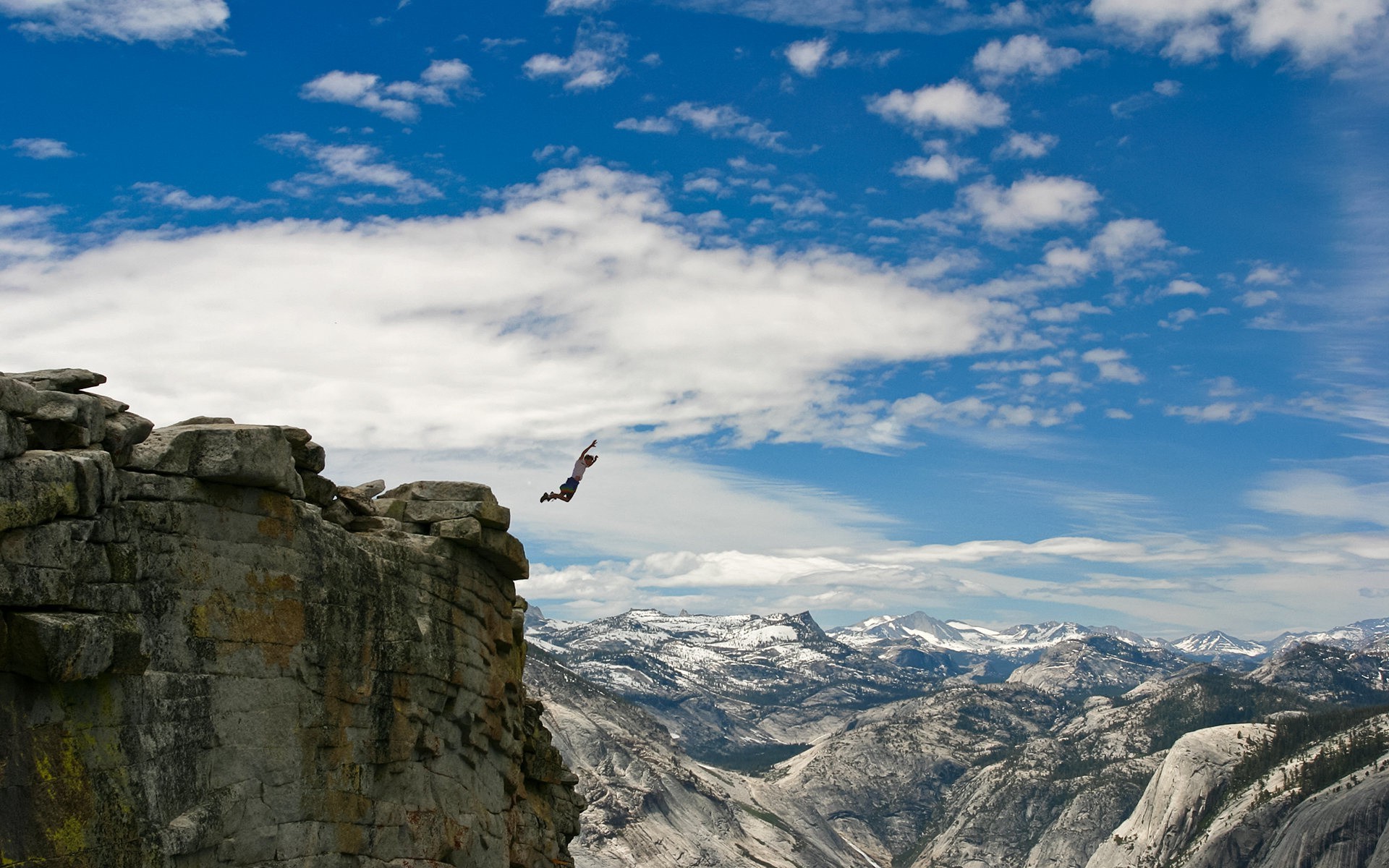 Atlet büyük bir uçurumdan aşağı atlar