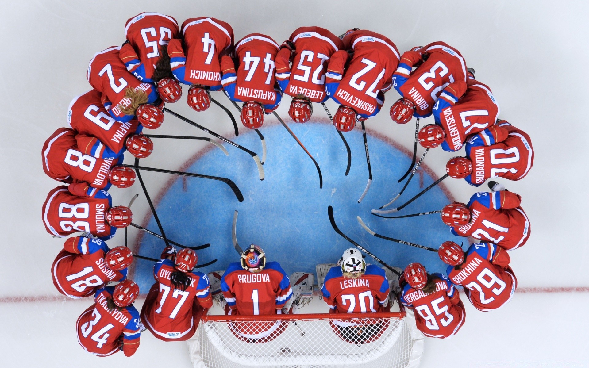 Hokey oyuncuları takımı oyuna hazırlanıyor
