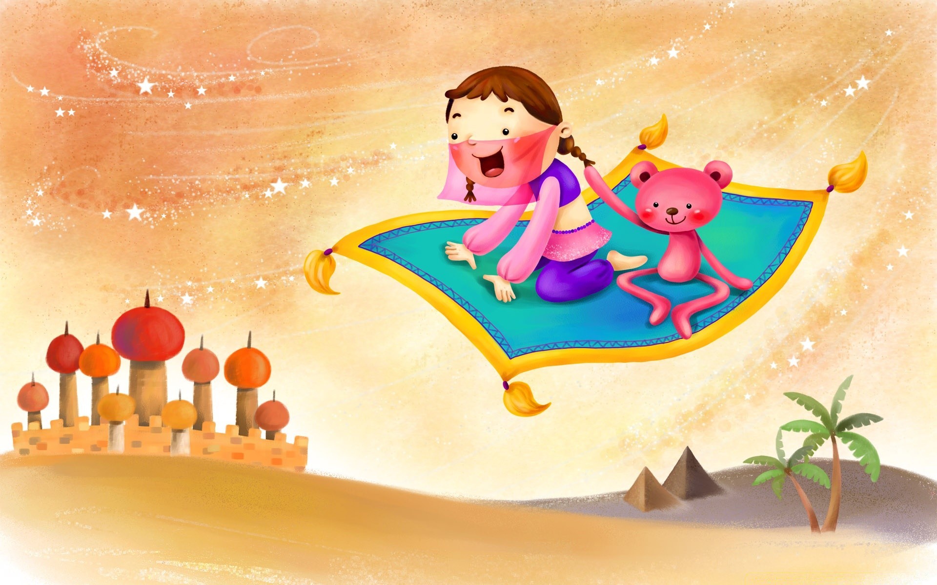 Uçağın halısındaki kızın çocuk illüstrasyonları