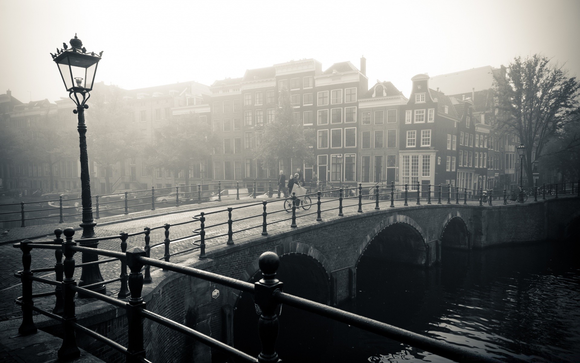 Nehrin karşısındaki köprü. tek renkli illüstrasyon