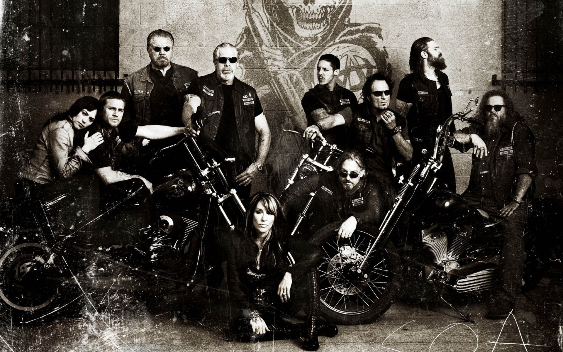 Televizyon dizisinden karanlık arka planda üç kişi