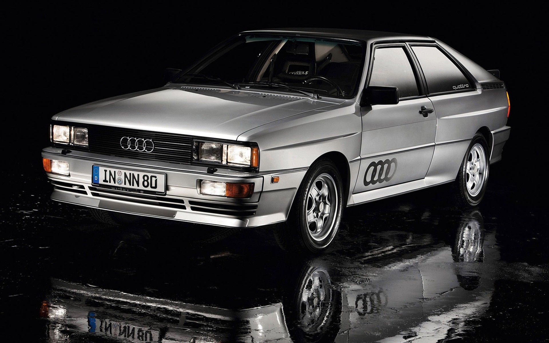 Siyah arka plan üzerine gümüş rengi Audi