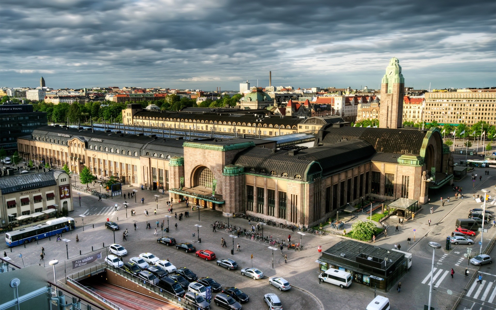 Katedralin merkezi manzarasına sahip şehrin ponoraması
