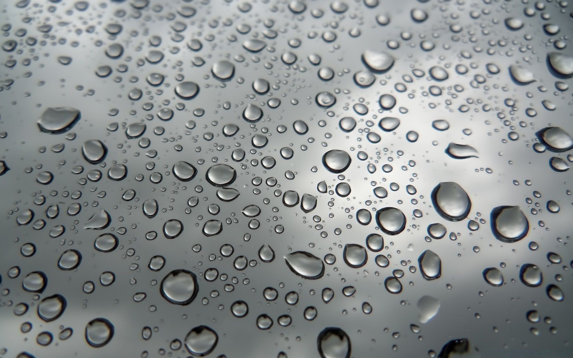 Pürüzsüz, karanlık bir yüzeyde su damlacıkları