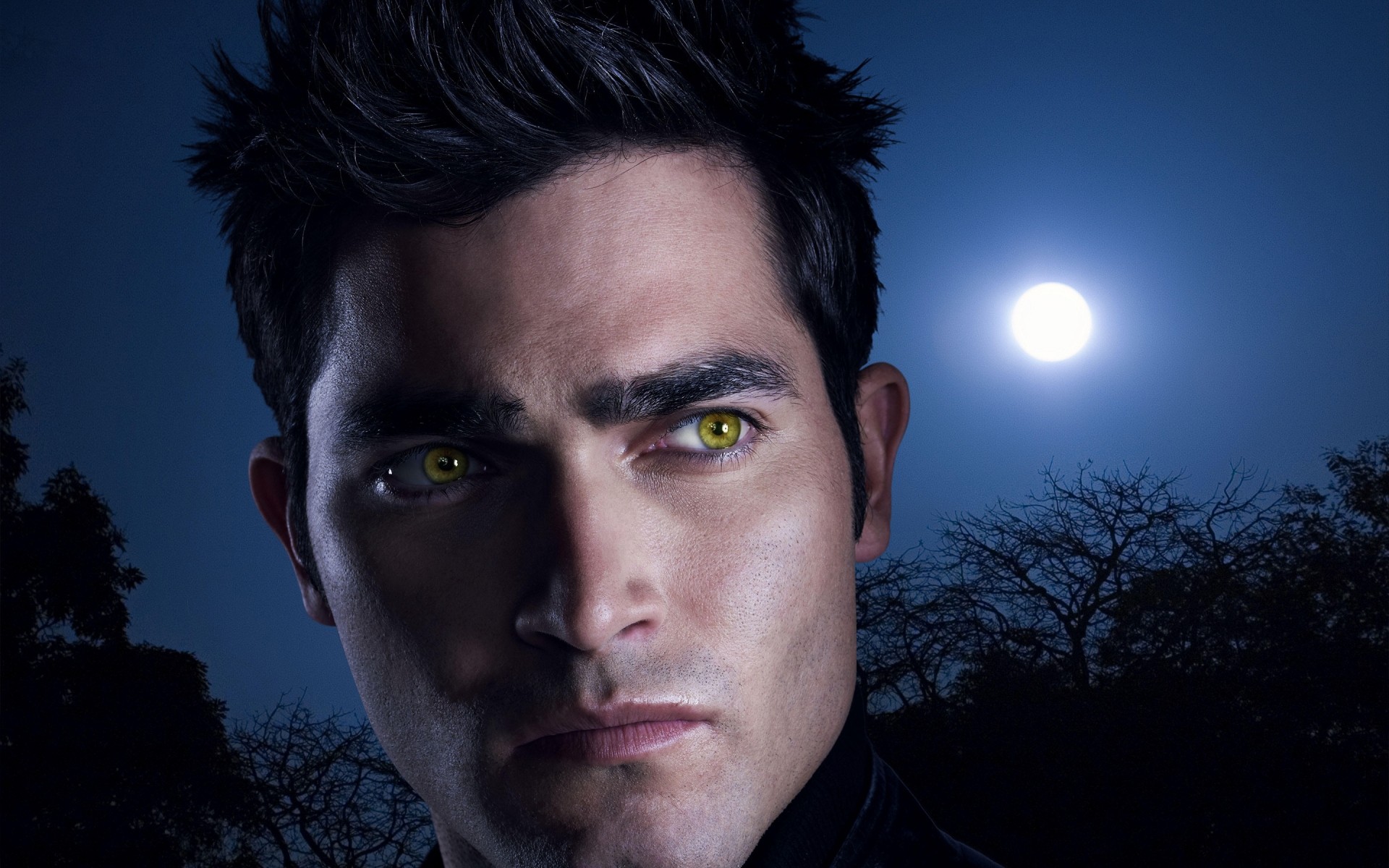 Ayın arka planına karşı yakışıklı bir adamın portresi