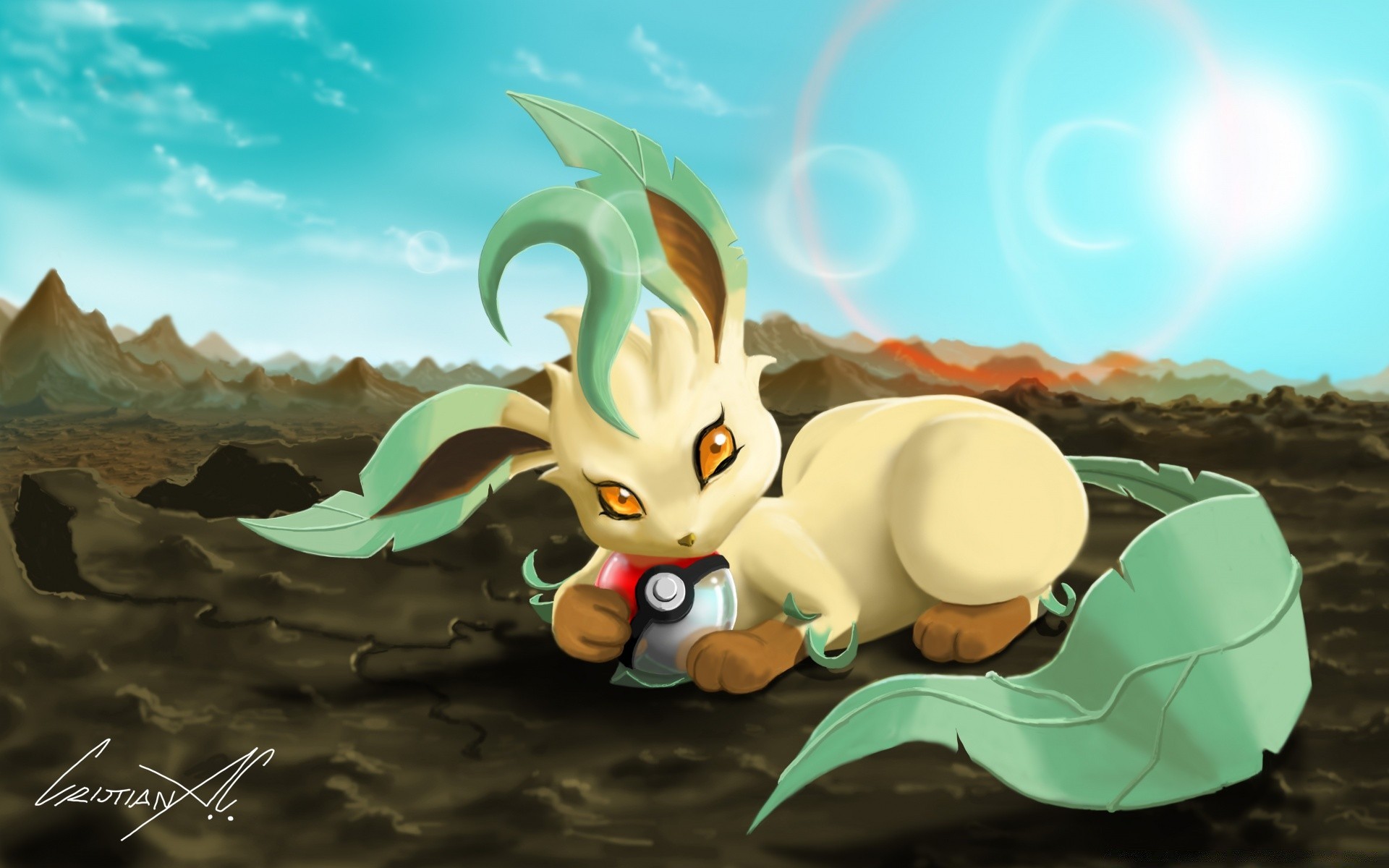Açık gökyüzüne sahip kayalarda Pokemon'un illüstrasyonu