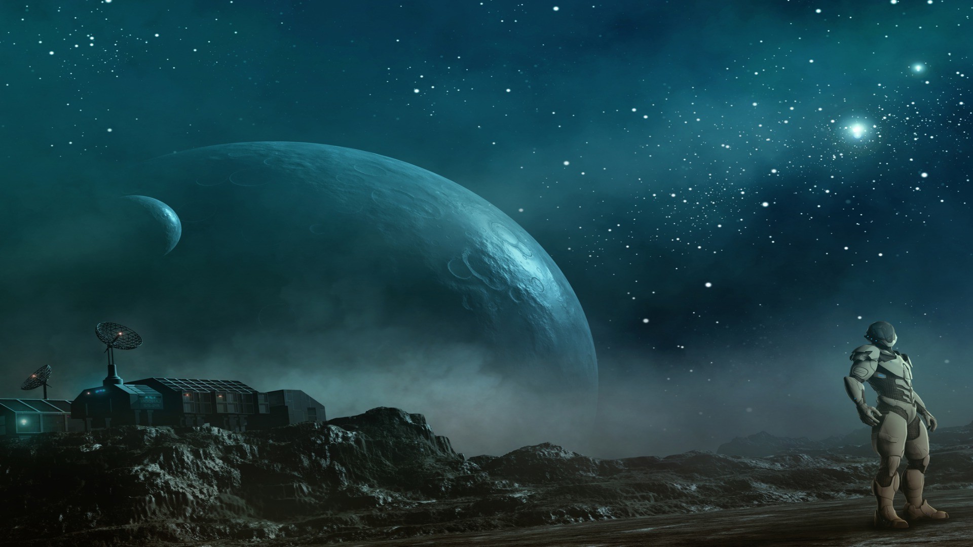 Uzayın fantastik bir resmi. güneş ışığı ve gezegen