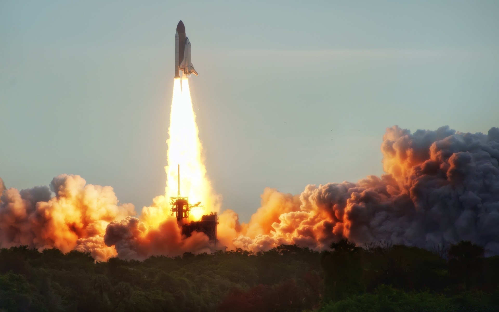 Uzay gemisi. Roket kalkıyor. Baykonur