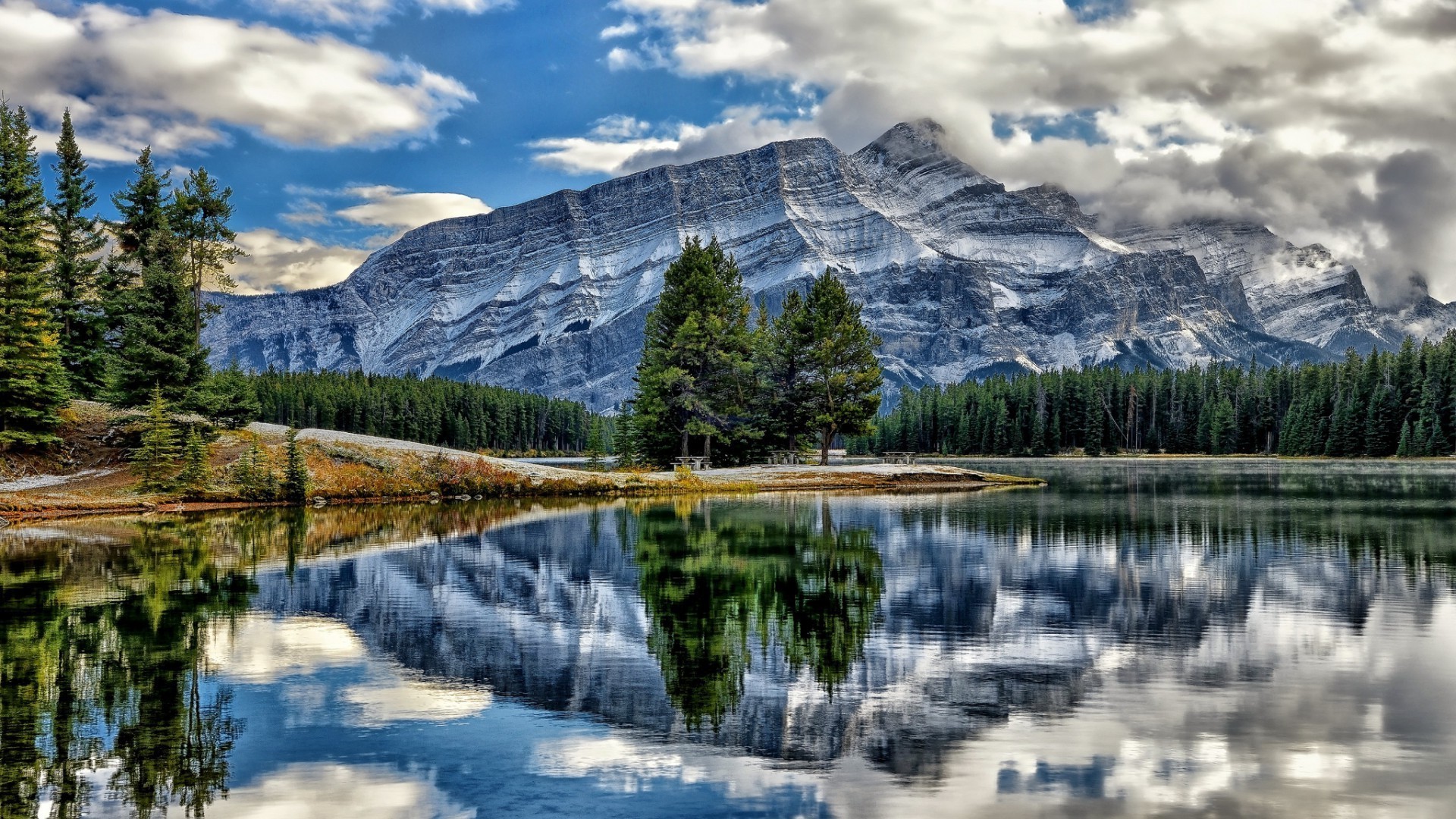 Gölün ayna yüzeyindeki dağların yansıması