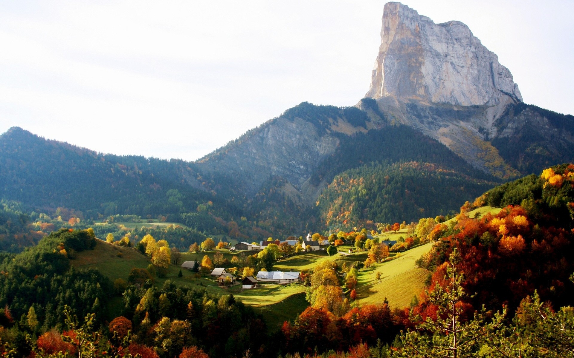 Dağ manzarasının arka planına karşı sonbahar renkleri