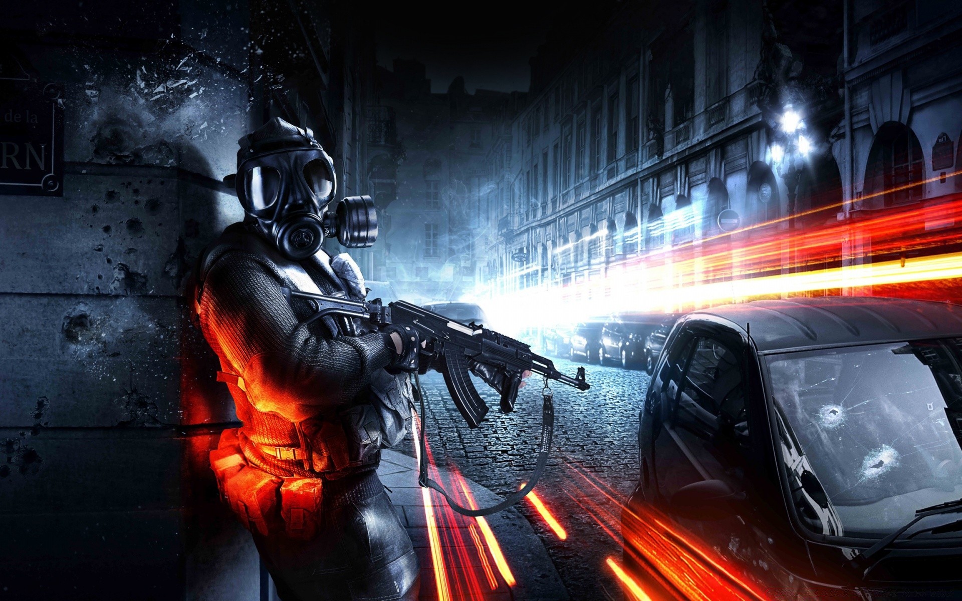 Gaz maskesinde silahı olan adam lazerdir