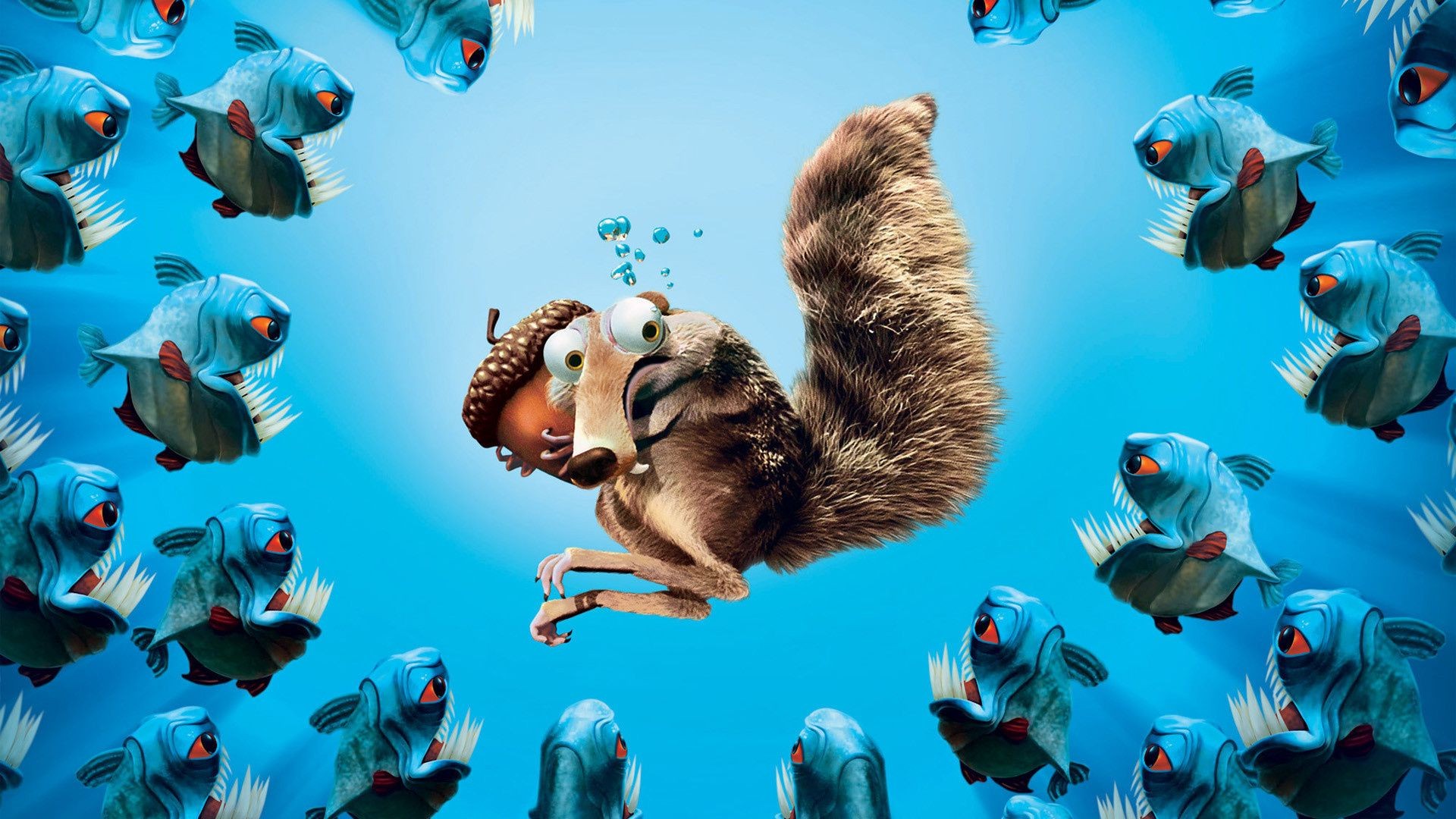 Karikatürden bir sincap, Buzul Çağı'ndan piranhalardan bir somunu kurtarır