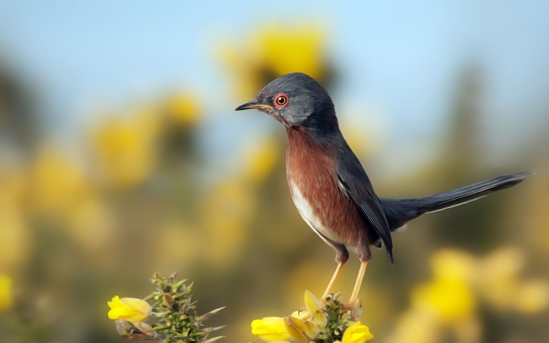 Ayaz bir gün. Sarı kravatlı bir kuş dalda oturuyor
