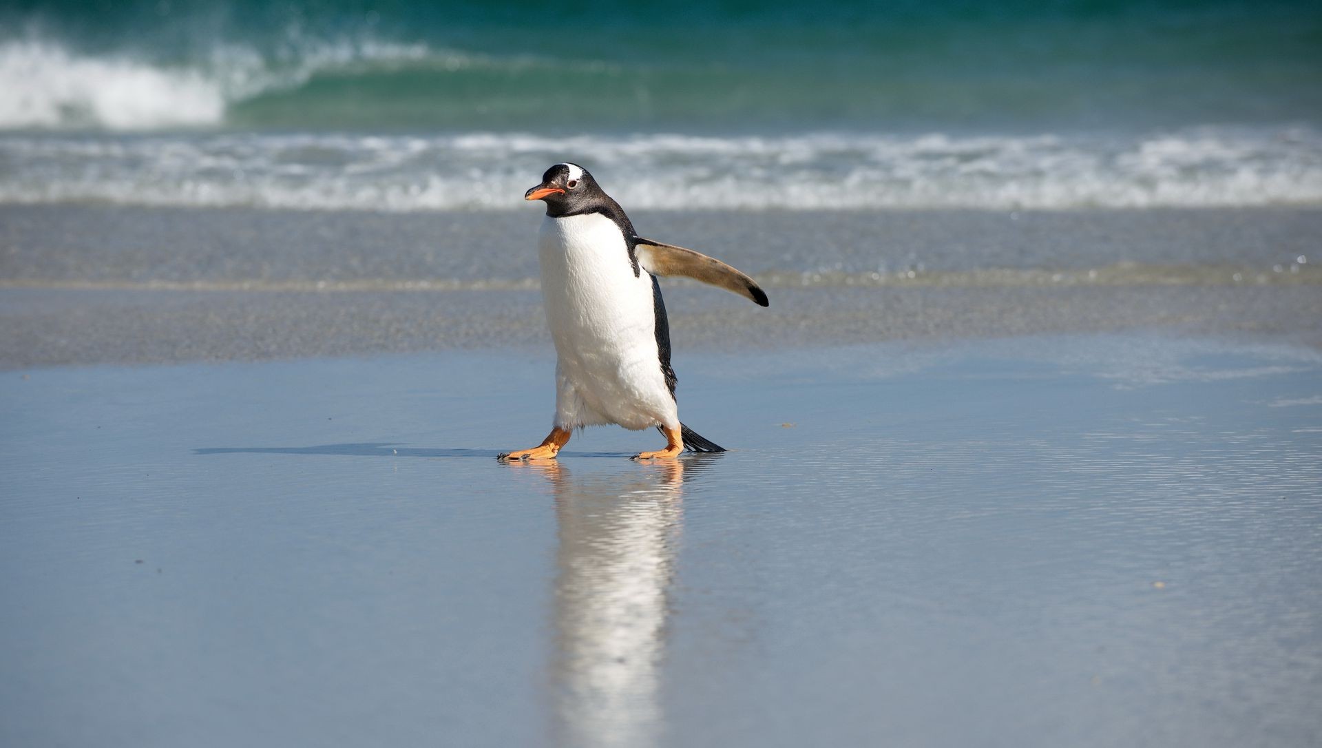 Mavi plajda öfkeli penguen