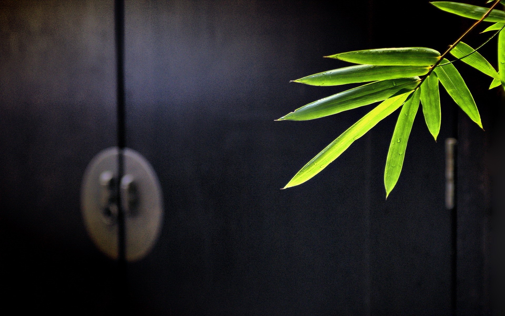 Yeşil, bulanık bir arka plan üzerinde bir dal üzerinde iki yeşil yaprak
