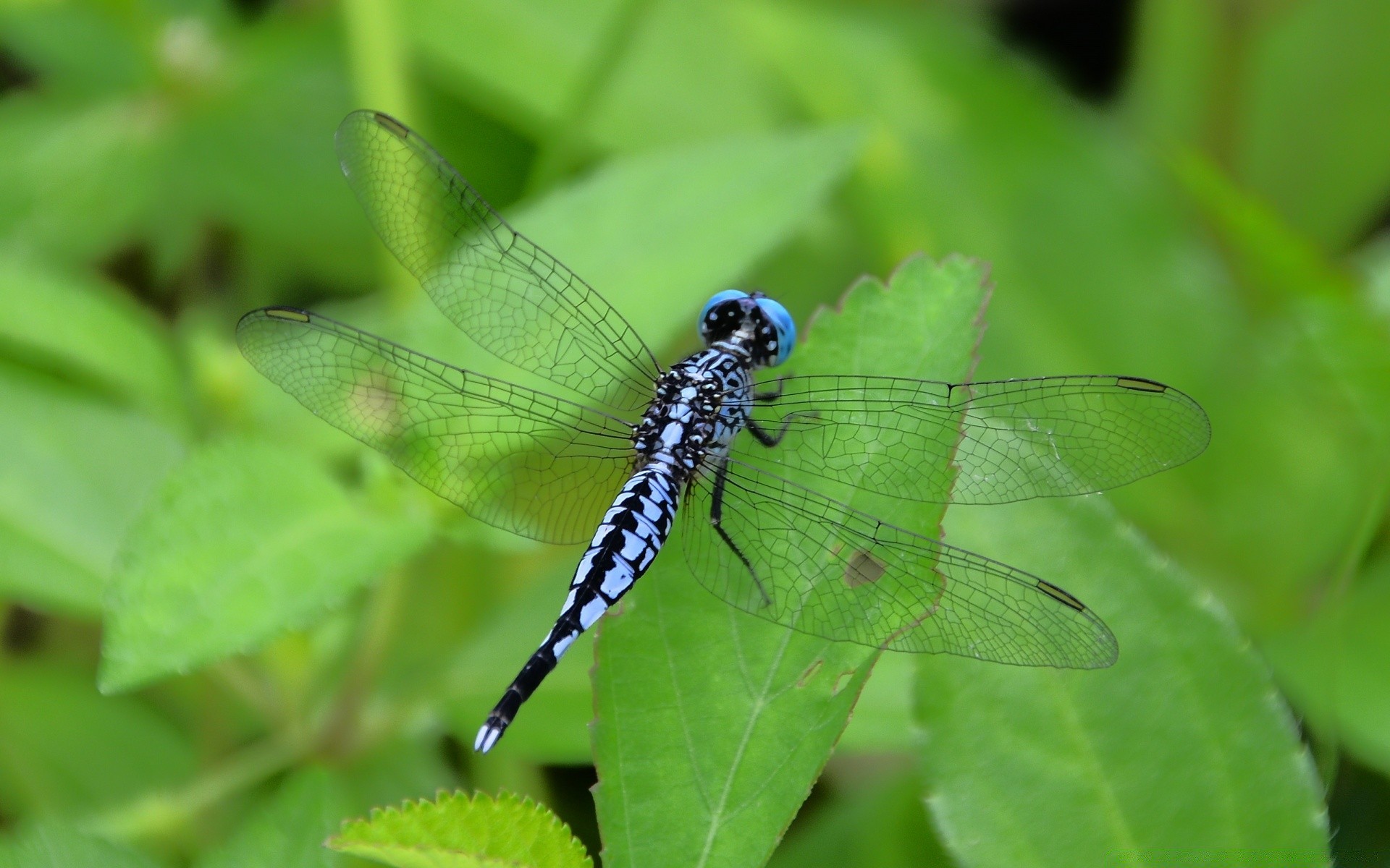 Yusufçuk yeşil bir yaprak üzerinde oturur