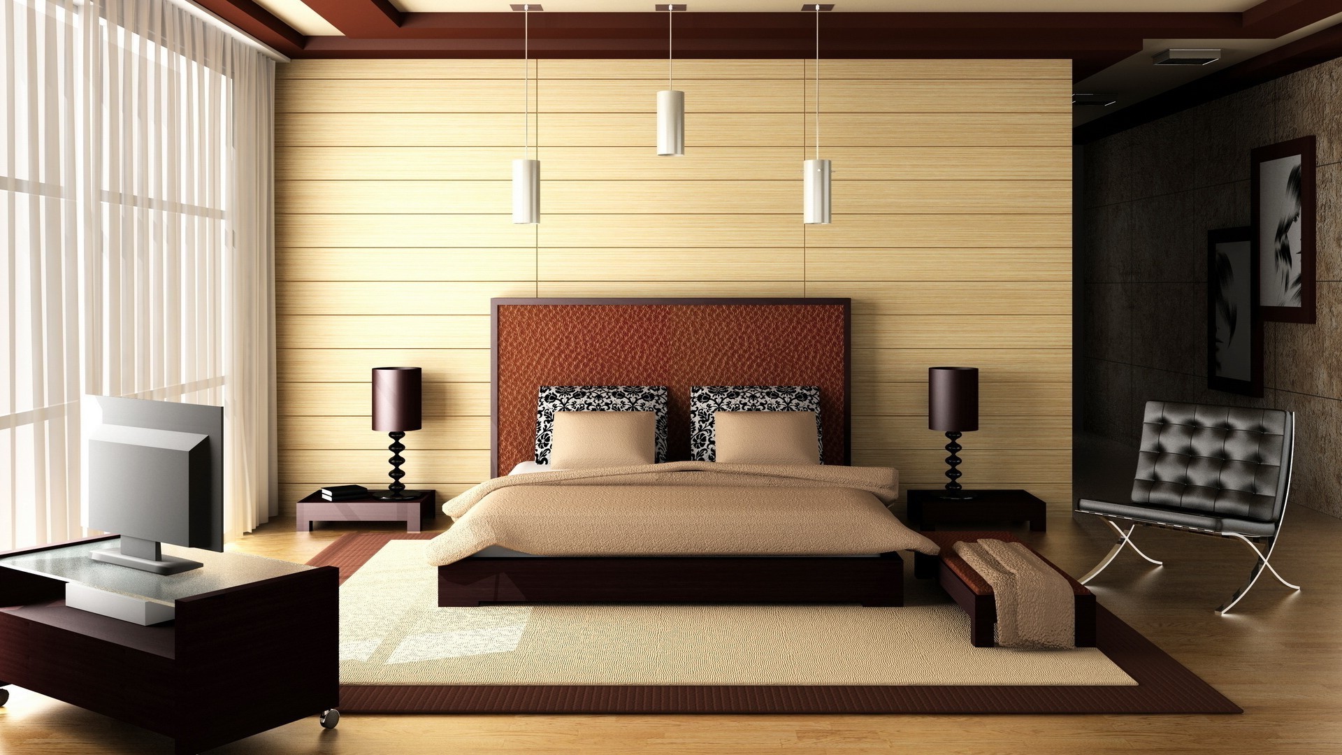 Büyük yatak ve kırmızı yastıklı yatak odası