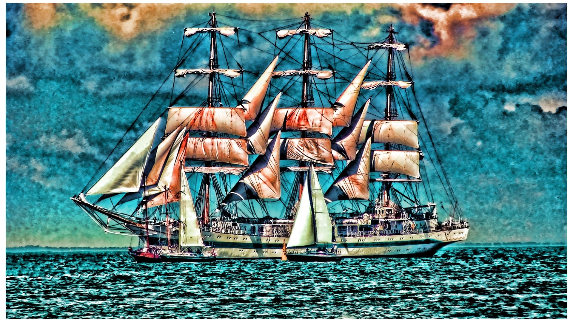 Denizin arka planına karşı yelkenli teknelerin çizimi