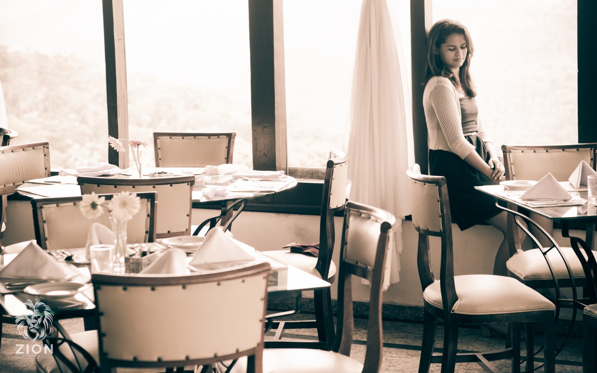 Kız pencerenin yanındaki masada oturuyor