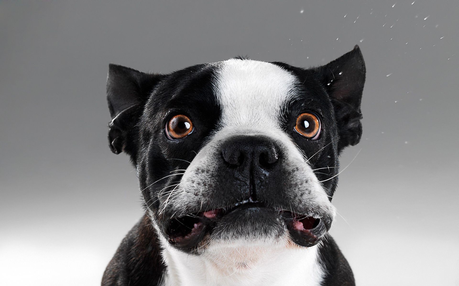 Beyaz bir arka plan üzerinde sevimli bir köpek