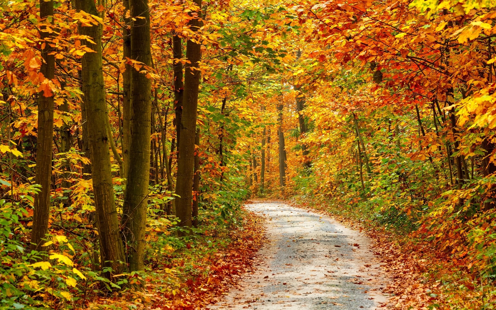 Yol boyunca sonbahar ağaçlarının olduğu yol