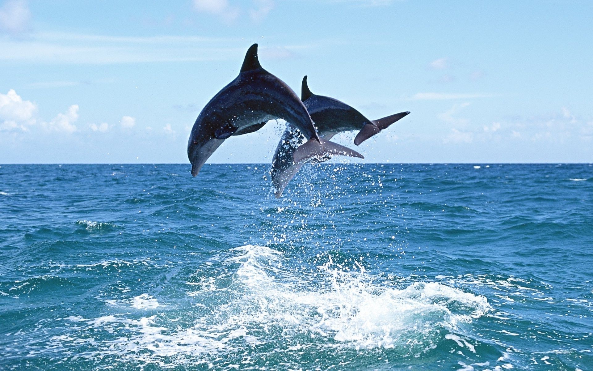 Yunuslar okyanusun berrak suyunda oynuyorlar