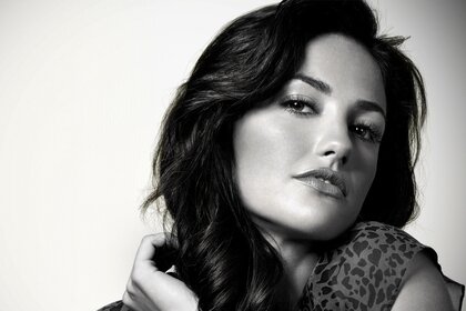 Merlin Munro nun siyah bir arka plana karşı portresi