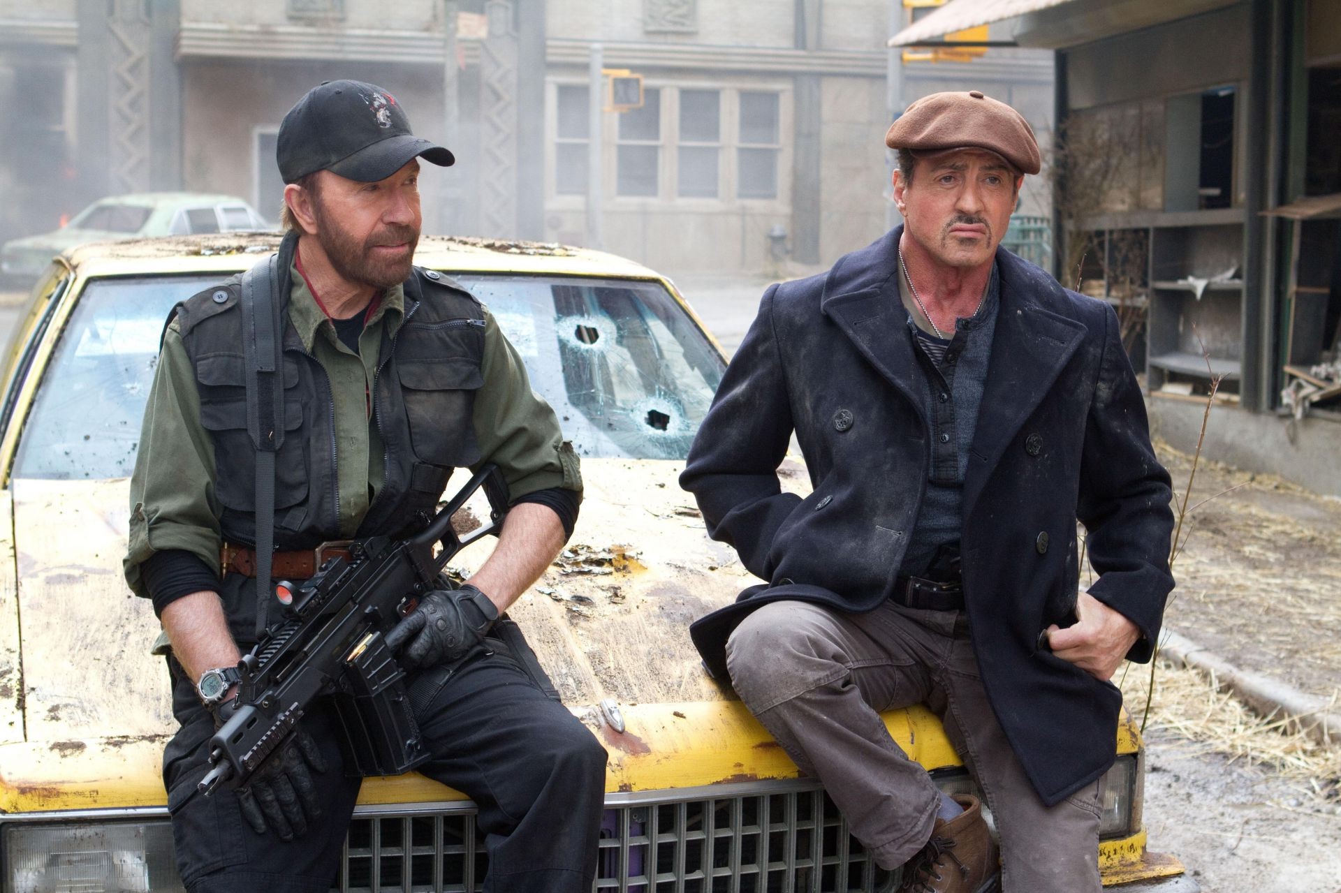Aksiyon sahnesinde Chuck Norris ve Sylvester Stallone