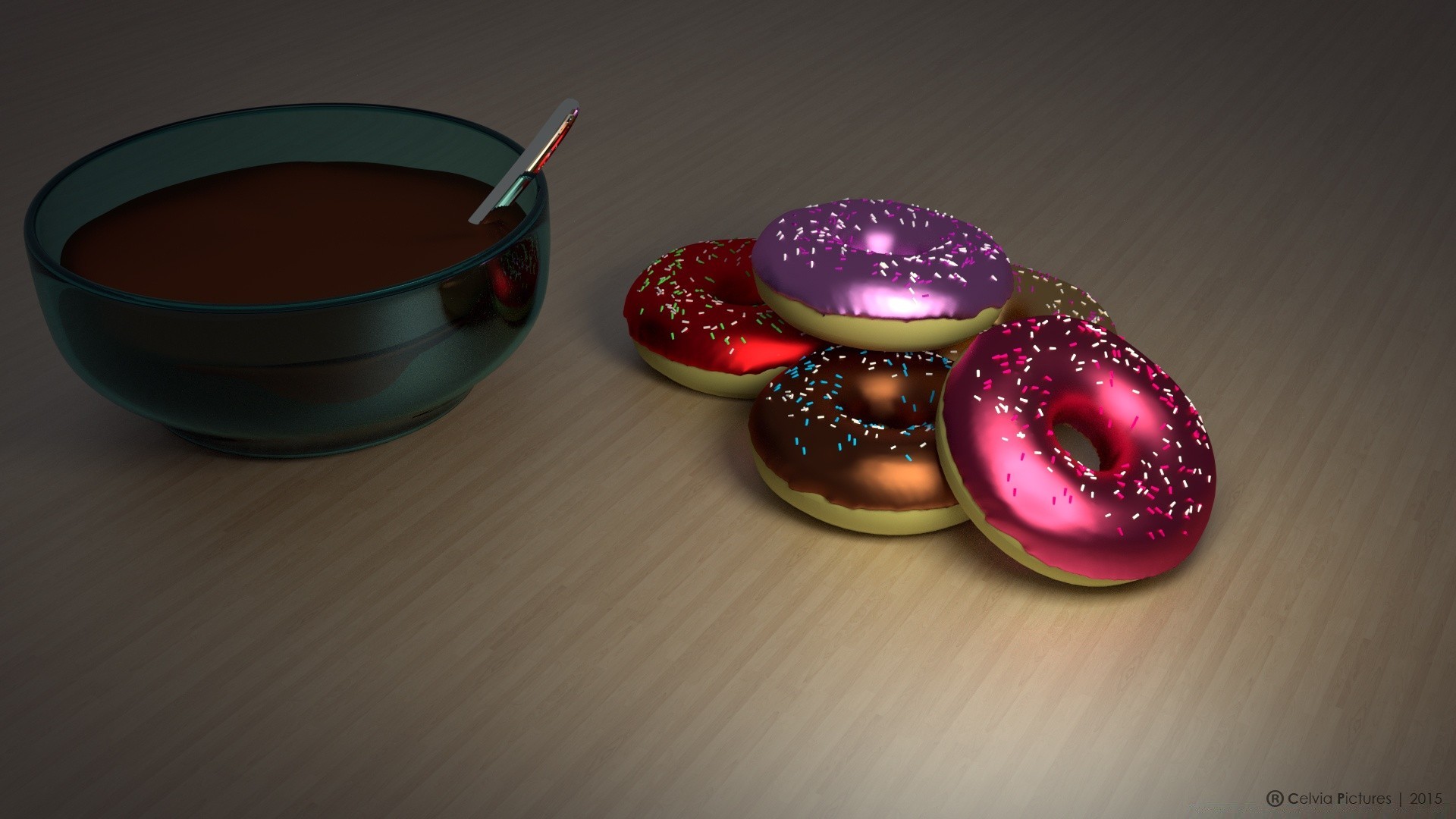 Masada üç bardak renkli tatlı ile