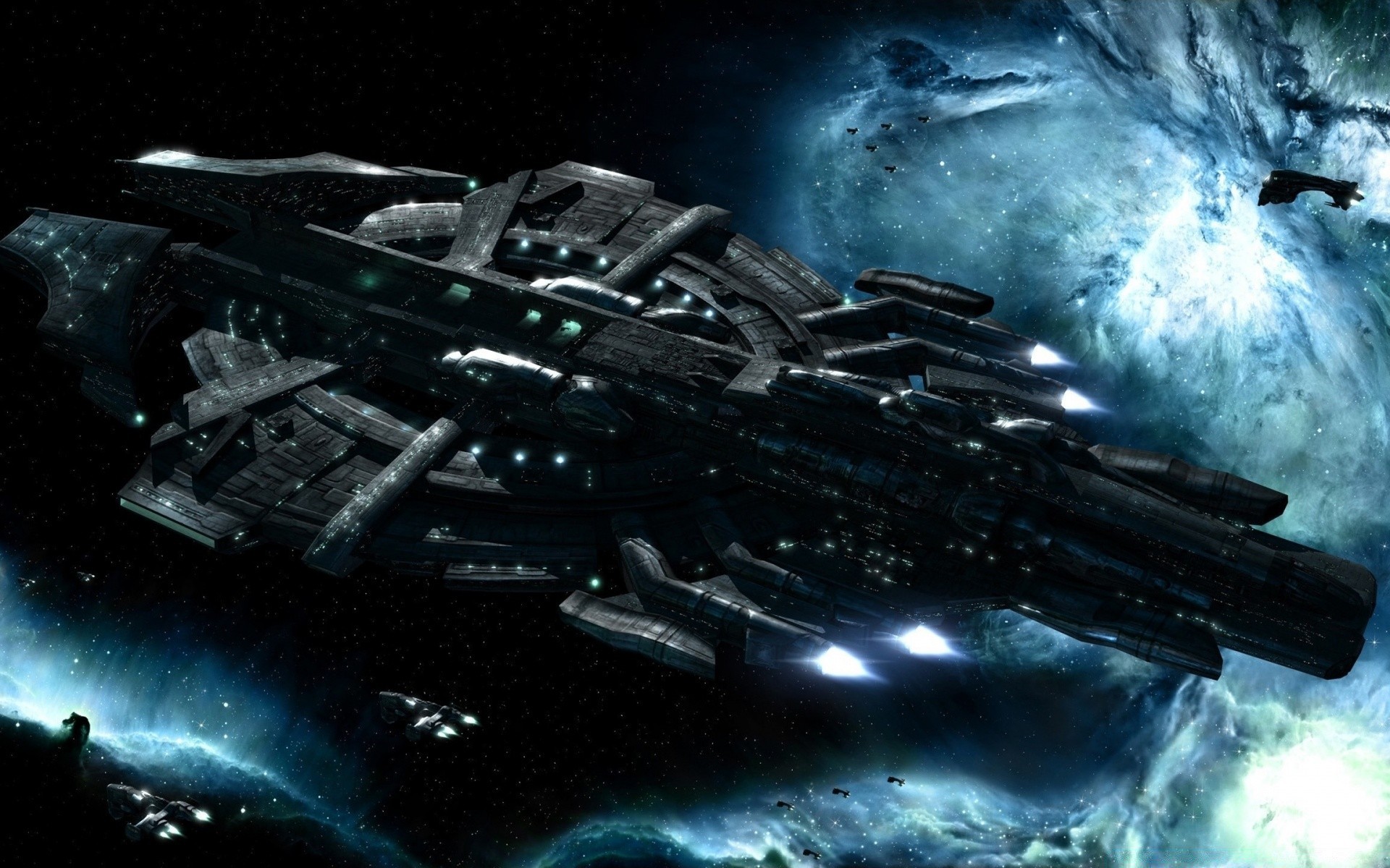 Mavi gökyüzünün arka planına karşı uzay gemisi