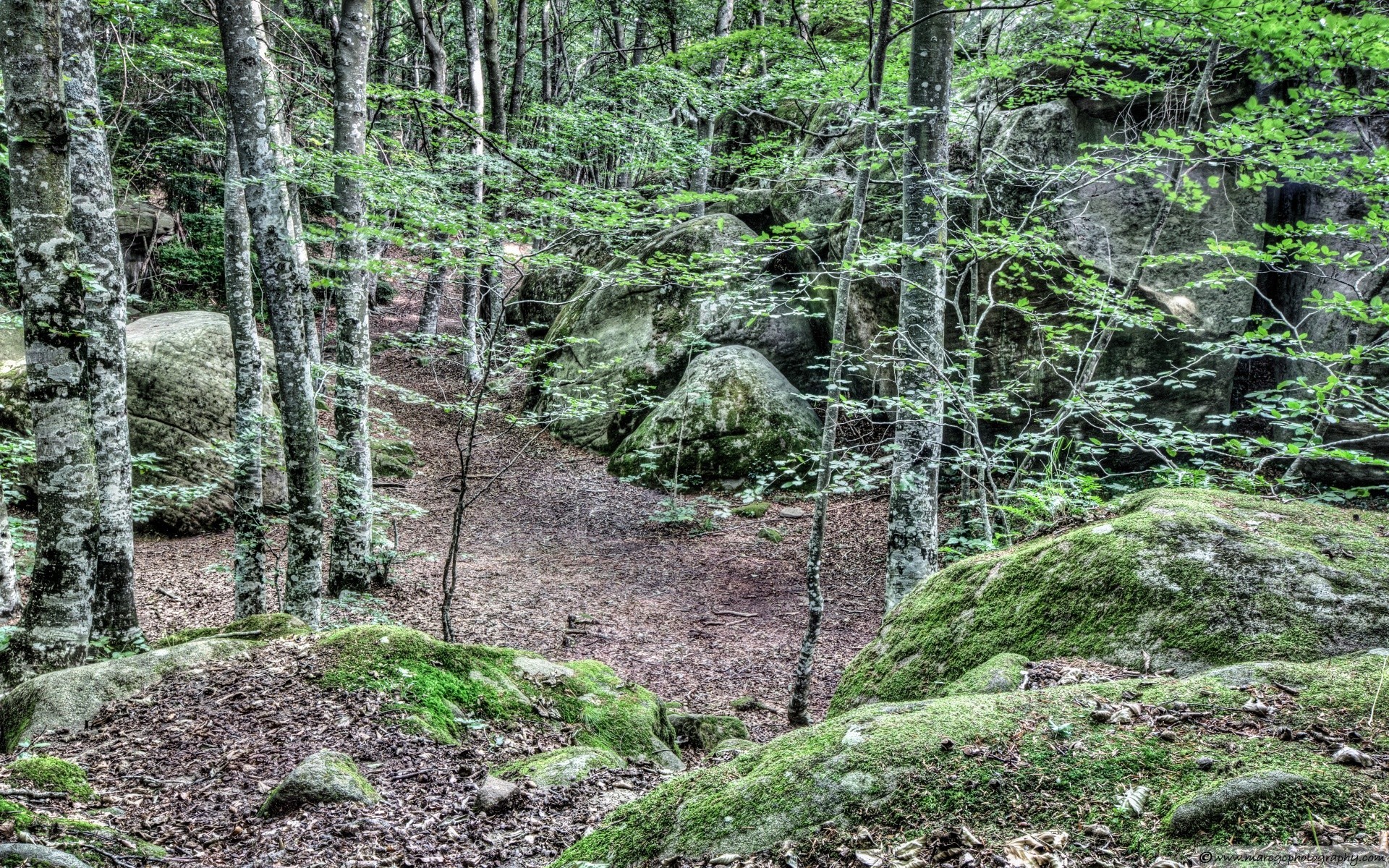 Ağaçlar, nehir ve köprü ile güzel doğa