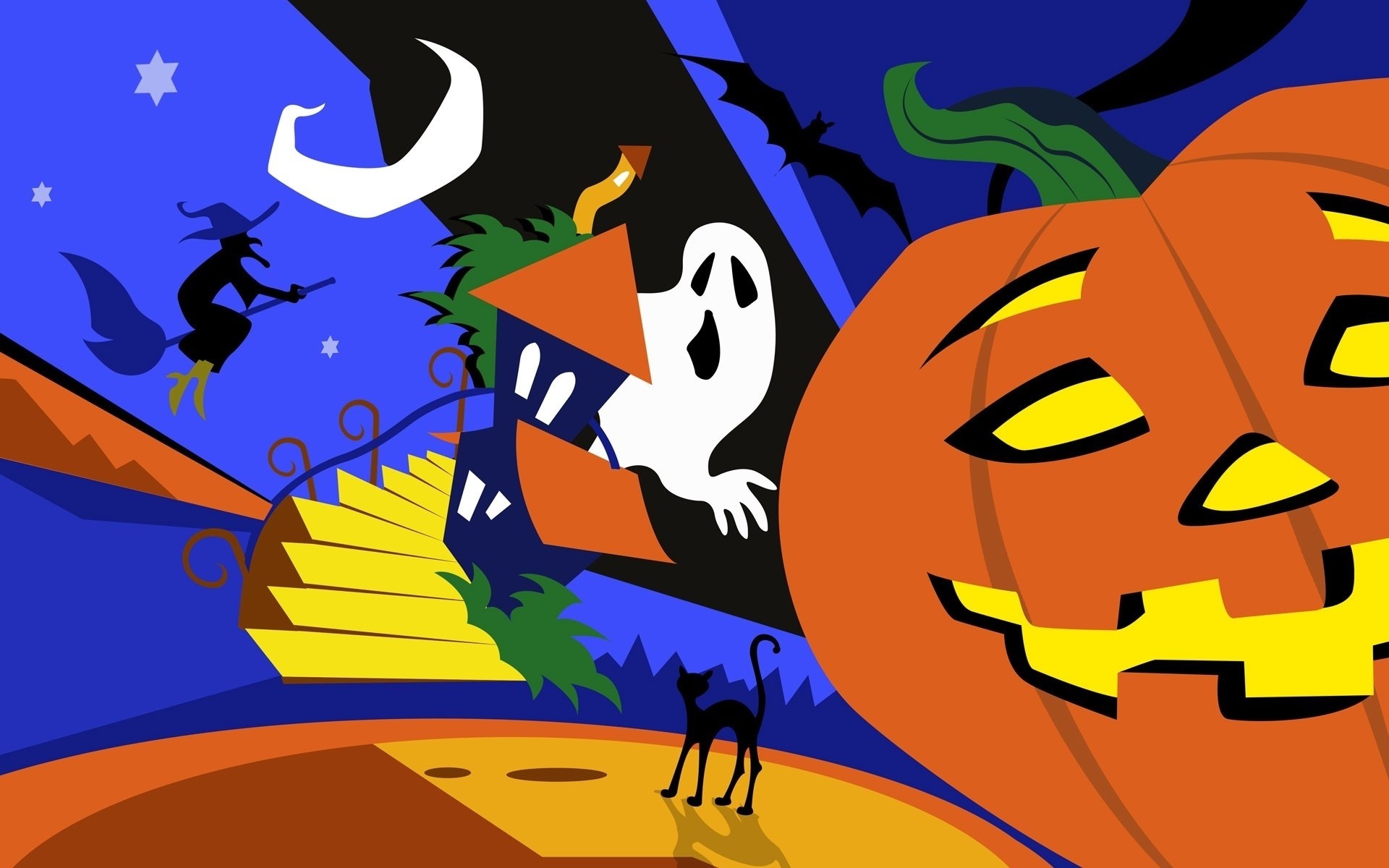 Cadılar Bayramı için ruhlar ve balkabağı ile renkli illüstrasyon