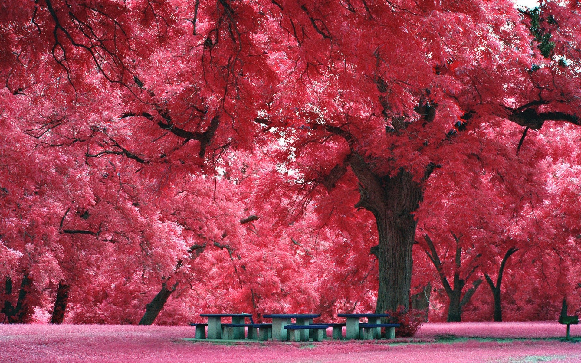 Yumuşak odak etkisi ile orman manzarası. Ön planda yuvarlak yapraklı bitkiler bulunur
