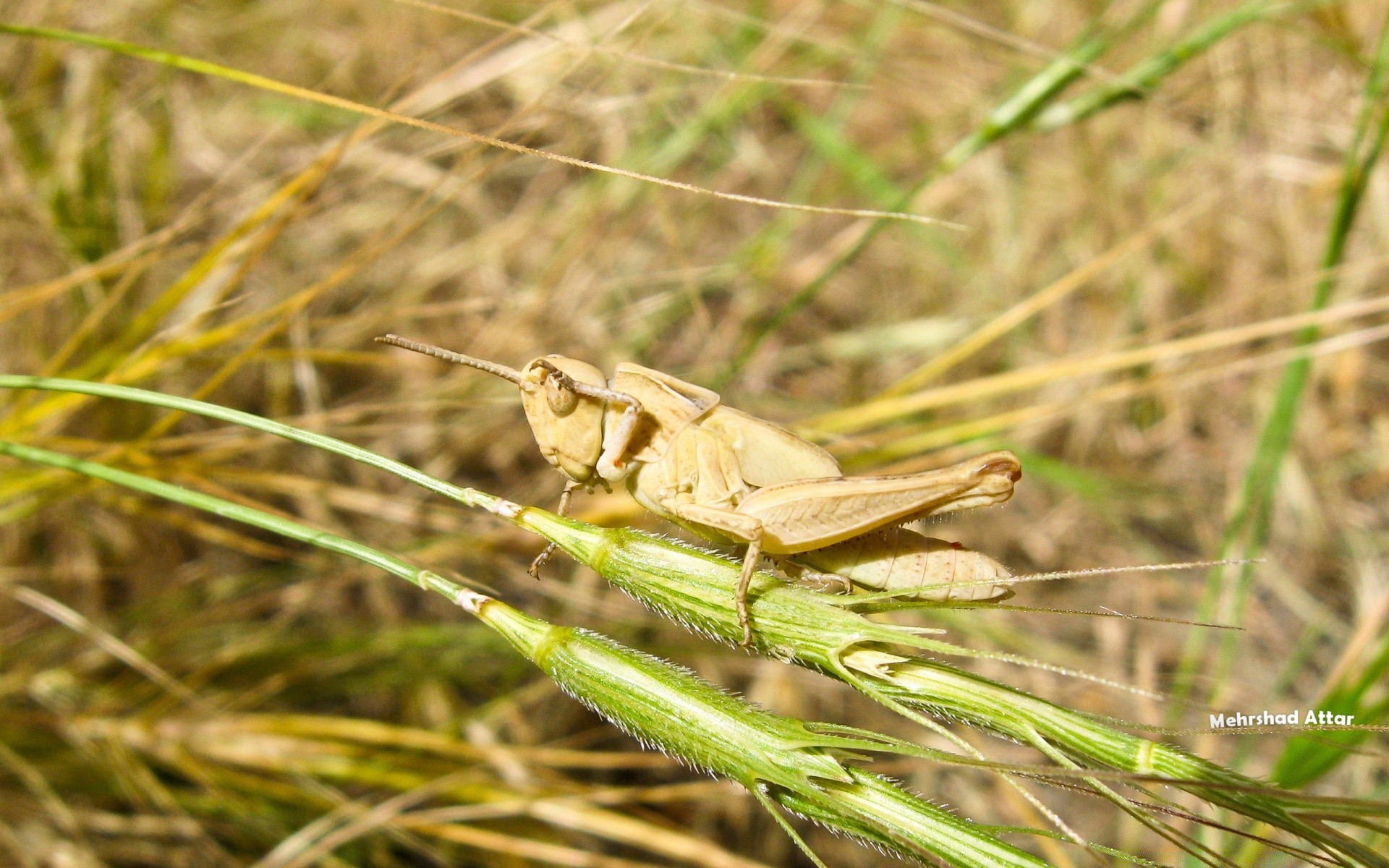 Doğada saman üzerinde çekirge