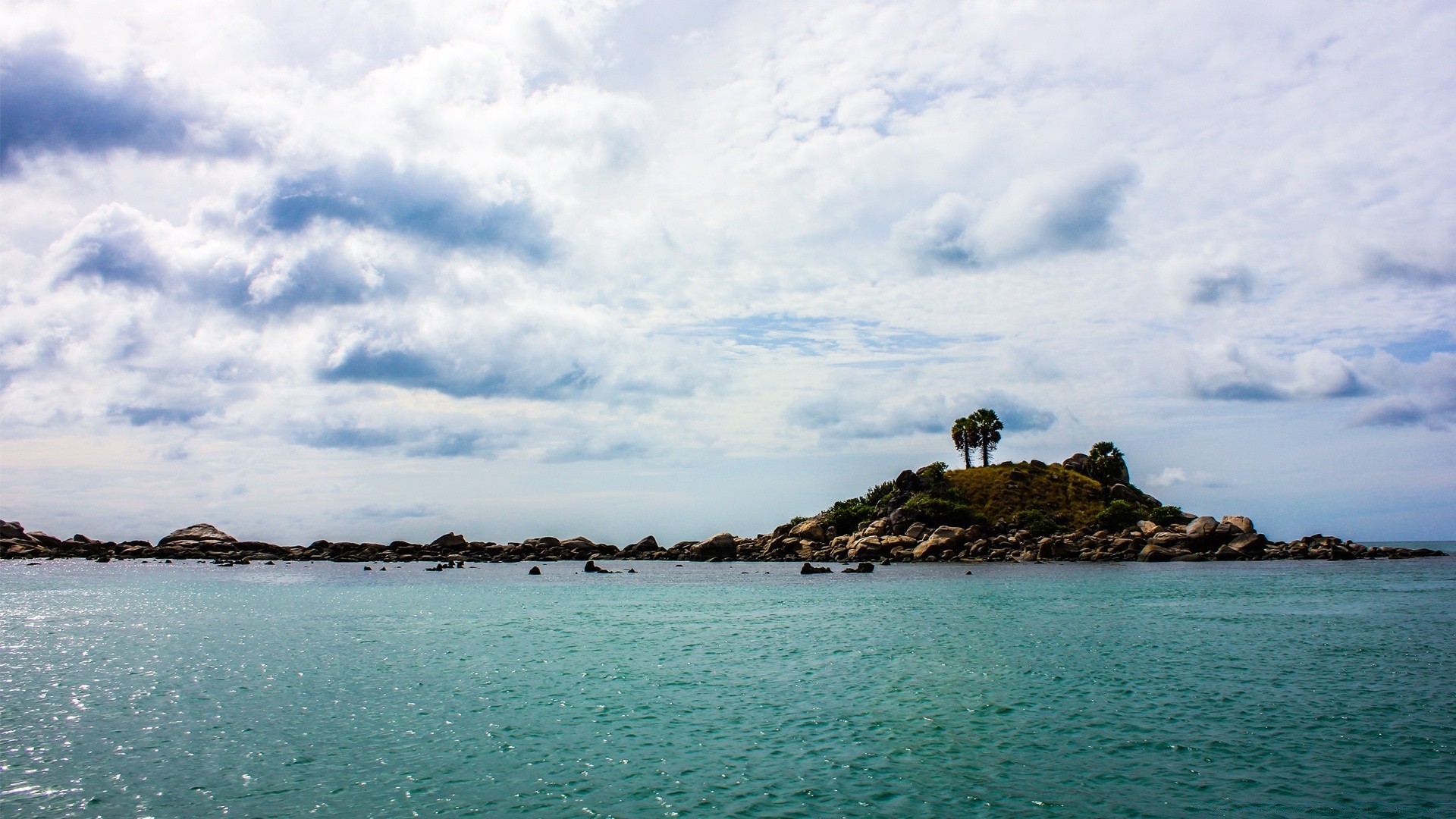 Deniz, gökyüzü ve ölü ağacın kökleri