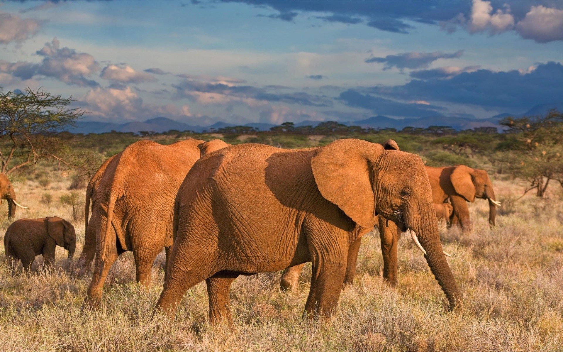 Gün batımında fillerin memelilerinin bahar fotoğrafı