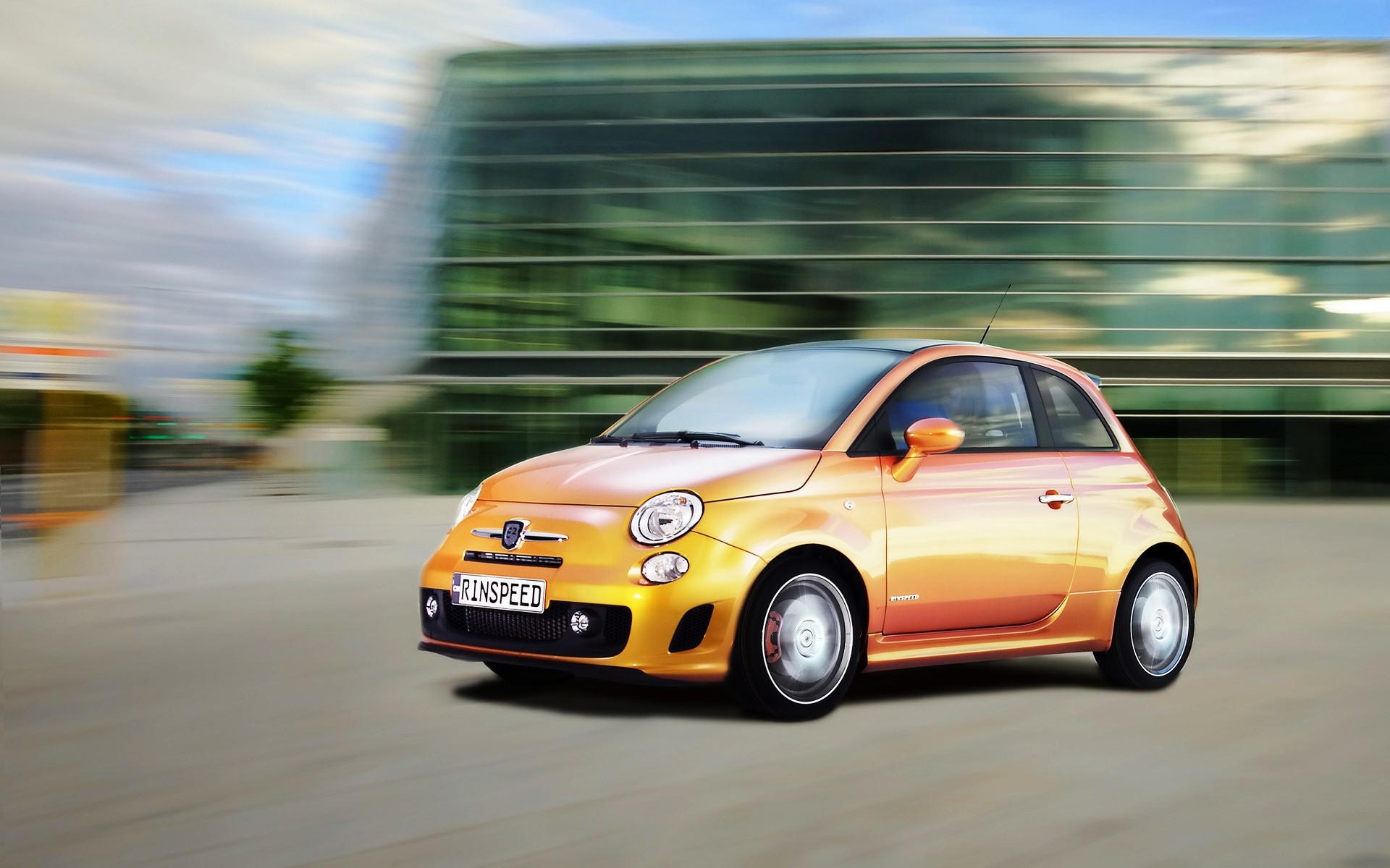 Büyük bir hayranın arka planında yırtıcı bir profile sahip beyaz bir araba