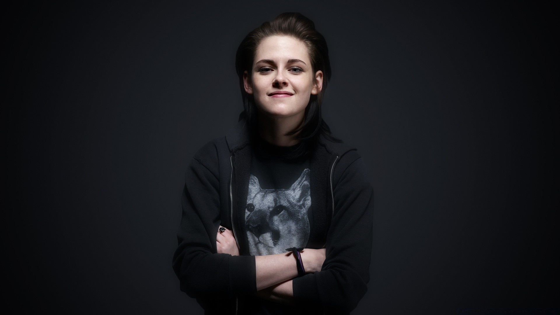 Karanlık tonlarda stüdyoda aktrisin portresi